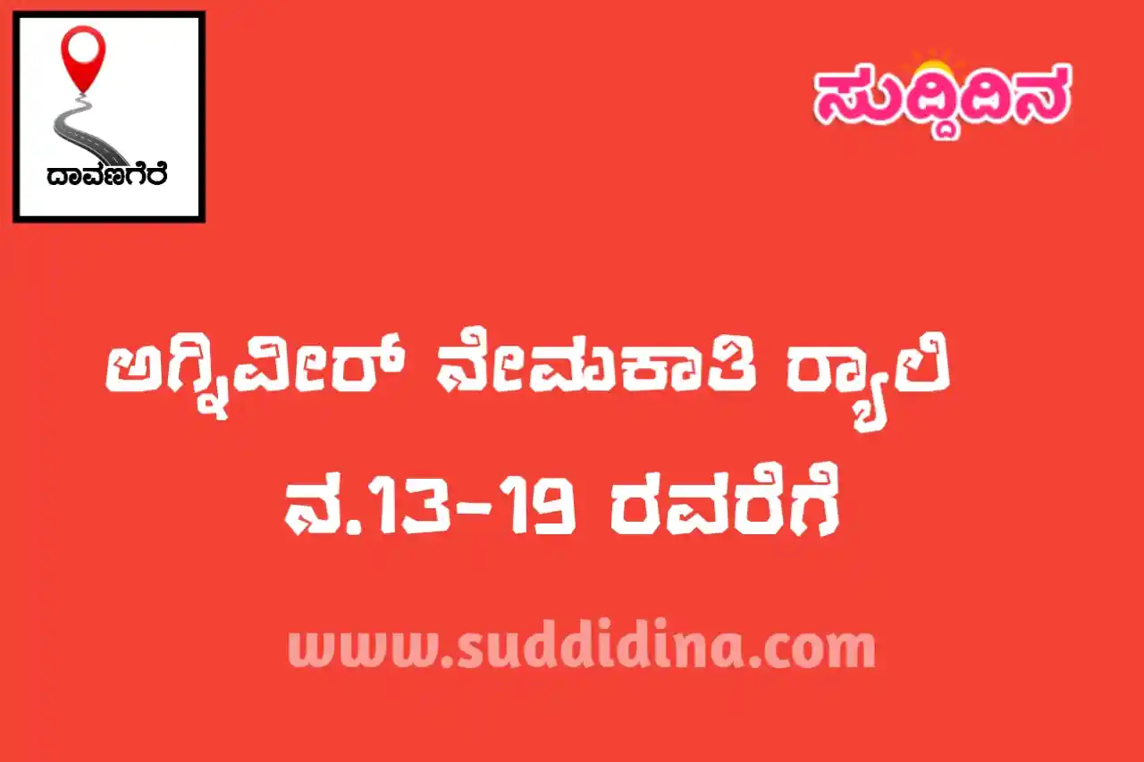 ಸುದ್ದಿದಿನ,ದಾವಣಗೆರೆ: ಅಗ್ನಿಪಥ್ ಯೋಜನೆಯಡಿ ನವಂಬರ್ 13 ರಿಂದ 19 ರವರೆಗೆ ಬಳ್ಳಾರಿ ಜಿಲ್ಲಾ ಕ್ರೀಡಾಂಗಣದಲ್ಲಿ ಅಗ್ನಿವೀರ್ ನೇಮಕಾತಿ ರ್ಯಾಲಿಯನ್ನು ಆಯೋಜಿಸಲಾಗಿದೆ.