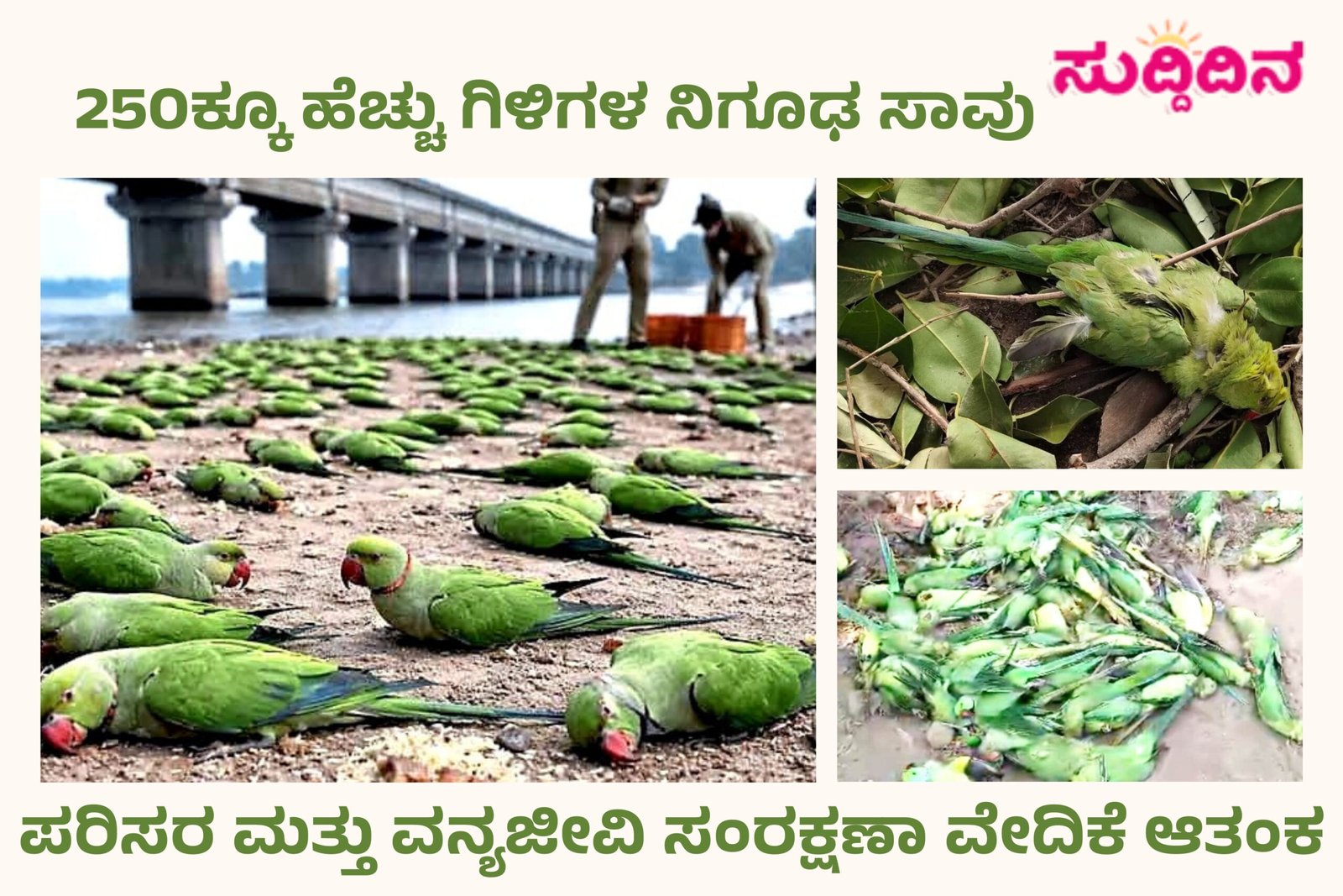 250ಕ್ಕೂ ಹೆಚ್ಚು ಗಿಳಿಗಳ ನಿಗೂಢ ಸಾವು ಪರಿಸರ ಮತ್ತು ವನ್ಯಜೀವಿ ಸಂರಕ್ಷಣಾ ವೇದಿಕೆ ಆತಂಕ