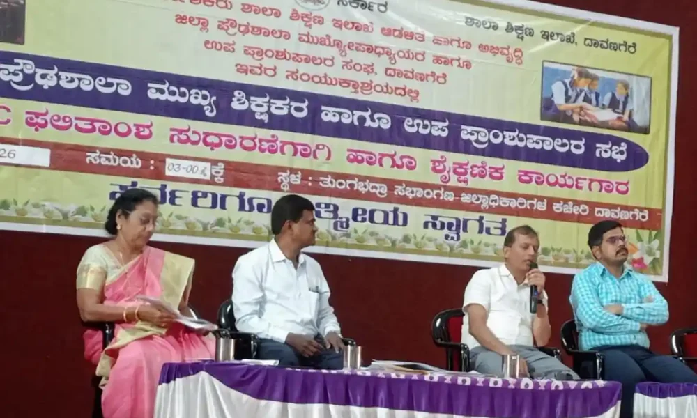ಸುದ್ದಿದಿನ,ದಾವಣಗೆರೆ:ಮಾರ್ಚ್ 18 ರಿಂದ ಪ್ರಾರಂಭವಾಗುವ ಎಸ್.ಎಸ್.ಎಲ್.ಸಿ ಫಲಿತಾಂಶವನ್ನು ಹೆಚ್ಚಿಸಲು ಶಿಕ್ಷಕರು ಮತ್ತು ಮುಖ್ಯೋಪಾಧ್ಯಾಯರು ಕ್ರಮವಹಿಸುವಂತೆ ಜಿಲ್ಲಾಧಿಕಾರಿ ಜಿ.ಎಂ.ಗಂಗಾಧರಸ್ವಾಮಿ ತಿಳಿಸಿದರು. ಅವರು ಶುಕ್ರವಾರ ಜಿಲ್ಲಾಧಿಕಾರಿ ಕಚೇರಿ ಆವರಣದಲ್ಲಿರುವ ತುಂಗಭದ್ರಾ ಸಭಾಂಗಣದಲ್ಲಿ ಎಸ್.ಎಸ್.ಎಲ್.ಸಿ ಫಲಿತಾಂಶ ಸುಧಾರಣೆ ಮತ್ತು ಶೈಕ್ಷಣಿಕ...