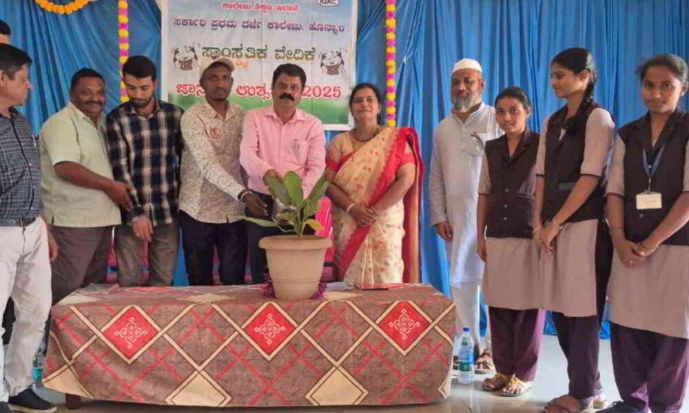 ಸುದ್ದಿದಿನ,ಹೊನ್ನಾಳಿ:ಜನಪದ ಕಲೆ ಗ್ರಾಮೀಣ ಭಾರತದ ತಾಯಿ ಬೇರು ಜನಪದ ಕಲೆ ಮತ್ತು ಕಲಾವಿದರು ಗ್ರಾಮೀಣ ಭಾರತದ ತಾಯಿಬೇರುಗಳಿದ್ದಂತೆ ಜನರ ಉನ್ನತ ಸಾಂಸ್ಕೃತಿಕ ಪರಂಪರೆಯನ್ನು ಬಿಂಬಿಸುವುದೇ ಜನಪದ ಕಲೆ ಎಂದು ಪ್ರಾಂಶುಪಾಲ ಡಾ. ಬಿ.ಜಿ.ಧನಂಜಯ್ ರವರು ಹೊನ್ನಾಳಿ...