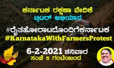 ಶನಿವಾರ ಸಂಜೆ ಕರ್ನಾಟಕ ರಕ್ಷಣಾ ವೇದಿಕೆ ಟ್ವಿಟರ್ ಅಭಿಯಾನ : #ರೈತಹೋರಾಟದೊಂದಿಗೆಕರ್ನಾಟಕ