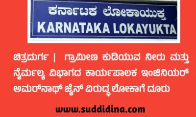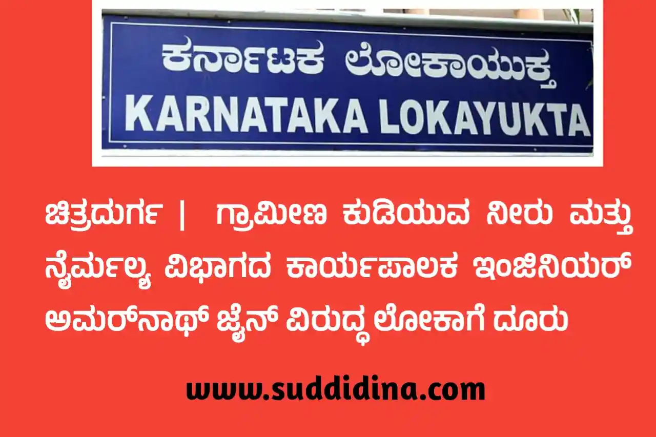 ಚಿತ್ರದುರ್ಗ | ಗ್ರಾಮೀಣ ಕುಡಿಯುವ ನೀರು ಮತ್ತು ನೈರ್ಮಲ್ಯ ವಿಭಾಗದ ಕಾರ್ಯಪಾಲಕ ಇಂಜಿನಿಯರ್ ಅಮರ್ನಾಥ್ ಜೈನ್ ವಿರುದ್ಧ ಲೋಕಾಗೆ ದೂರು