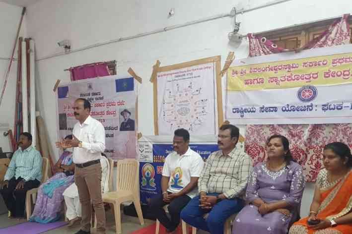ತಾಲೂಕಿ ಶ್ರೀ ಶ್ರೀ ಶಿವಲಿಂಗೇಶ್ವರ ಸ್ವಾಮಿ ಸರ್ಕಾರಿ ಪ್ರಥಮ ದರ್ಜೆ ಕಾಲೇಜಿನಲ್ಲಿ ಐಕ್ಯೂಎಸಿ ಮತ್ತು ಎನ್ ಎಸ್ ಎಸ್ ವತಿಯಿಂದ ಇಂದು ಅಂತರರಾಷ್ಟ್ರೀಯ ಯೋಗದಿನಾಚರಣೆಯನ್ನು ಹಮ್ಮಿಕೊಳ್ಳಲಾಗಿತ್ತು. ಈ ಸಂದರ್ಭದಲ್ಲಿ ಮಾತನಾಡಿದ ಅವರು, ಇಂದು ಅಂತರಾಷ್ಟ್ರೀಯ ಯೋಗ ದಿನ ಸರಿಸುಮಾರು ಹತ್ತು ವರ್ಷದಿಂದ ನಿರಂತರವಾಗಿ ಯೋಗ ದಿನಾಚರಣೆಯನ್ನು ಅಧಿಕೃತವಾಗಿ ಆಚರಿಸಿಕೊಂಡು ಬಂದಿದ್ದೇವೆ ,ಸರಿ ಸುಮಾರು ಐದು ಸಾವಿರ ವರ್ಷಗಳ ಇತಿಹಾಸವನ್ನು ಹೊಂದಿರುವ ಆಯುಷ್ ಯೋಗ ದಿನಾಚರಣೆ ವಿಶ್ವದ 142 ದೇಶಗಳು ಇಂದು ಆರೋಗ್ಯ ಸ್ವಾಸ್ಥಕ್ಕಾಗಿ ಯೋಗವನ್ನು ಆಚರಿಸುತ್ತಿವೆ ಎಂದರು.